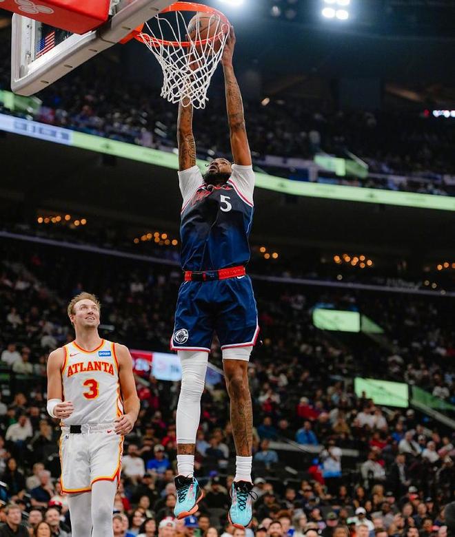 这一个比赛日,快船坐镇主场迎战来访的亚特兰大老鹰,本场比赛哈登在莱昂纳德和比尔缺战的情况下,扛住快船前进,也贡献了三双的个人表现,但队友表现太差,让残阵的老鹰以105-102客场获胜,连斩洛杉矶双雄。