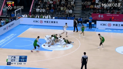 第三节辽宁被迫调整,后场攻防全都压在高诗岩身上,广东仍旧未能抢下开局,三分频频打铁,赵睿还在一次快攻中伤到脚踝,广东队陷入得分荒,辽宁趁机打出转换,付豪连得4分,辽宁43-45缩小分差。