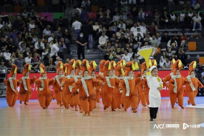 中场休息时,东莞赛区为观众带来幼儿园小朋友表演的舞蹈《莞小鹅》。