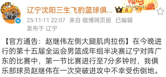 辽宁男篮正式官宣!赵继伟伤病公布,第一阶段或报销,早日康复