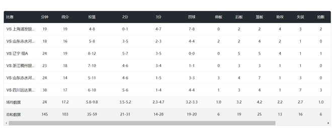 实际上罗欣棫在国内已经是最顶尖锋线,全运会三场比赛两场20+,目前 是场均32分钟,拿到21分7.7篮板2.3助攻1抢断0.7盖帽,命中率51.1%,三分命中率41.1%。