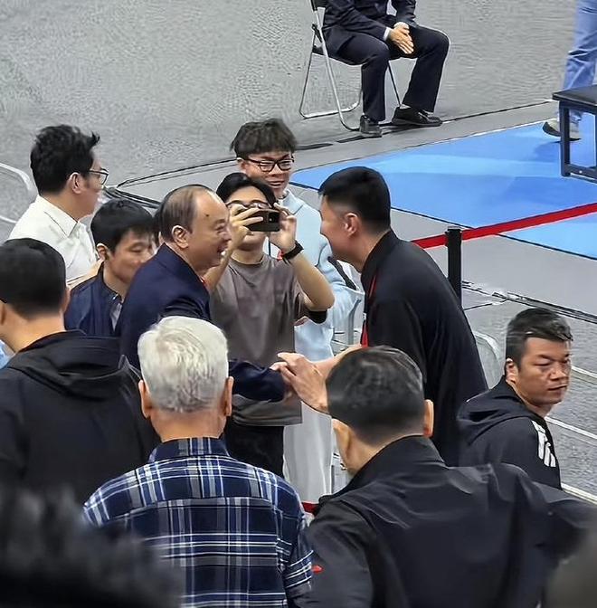 在比赛结束后,杜锋和赵睿、胡明轩等弟子走到场边和熟悉的朋友打招呼。杜锋突然看到了一位熟悉的领导在冲自己招手致意。