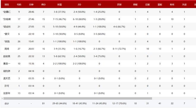 周琦只打了26分钟,孙铭徽只打了28分钟,赵嘉仁只打了28分钟,胡金秋仅打27分钟,赵岩昊仅打22分钟,周琦被换下场时他没有一点喜悦的神色,因为这是周琦职业生涯参与全运会首次没有夺冠,此前三次代表辽宁队他都是金牌。