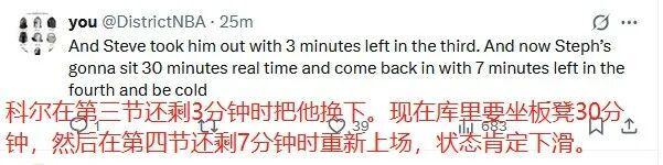 “如果你队里有斯蒂芬·库里,那么每场比赛你的首要任务都应该是确保他保持节奏。但大多数时候,脑子不太灵光的科尔会优先考虑所有人,唯独忽略库里。让库里找到节奏,就能震慑对手,让库里为球队注入信心。