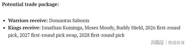 国王记者斯泰尔斯曾透露,一支“高速公路沿线”的加州NBA球队正密切关注小萨的交易动态,虽未明确队名,但结合加州球队现状,战绩不佳的勇士与快船被外界普遍视为潜在下家,《体育画报》更是为两队设计了针对性交易方案。