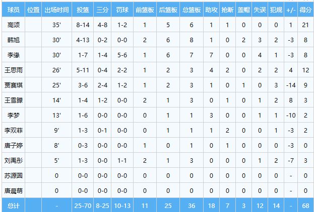 其次,韩旭在本场比赛发挥失常,全场出战30分钟13中4得到8分8篮板2盖帽3失误,郑薇太熟悉韩旭的打法和甜点位,所以全场比赛重点夹击限制韩旭接球,逼迫她到投篮不准的位置出手。