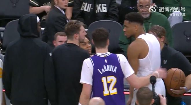 东契奇拿到了比赛用球,拍了拍字母哥的胸口表示感谢。