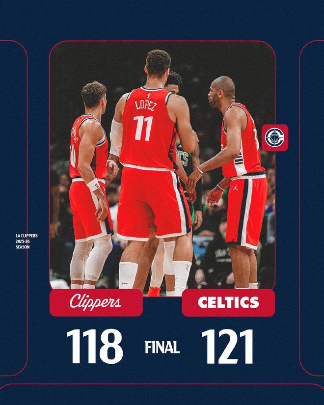 普理查德2罚全中,距离终场仅剩1.6秒,哈登绝平远投不进,比赛时间走完。最终,快船以118比121惜败于对手,无缘24分逆转,凯尔特人则实现了2连胜。