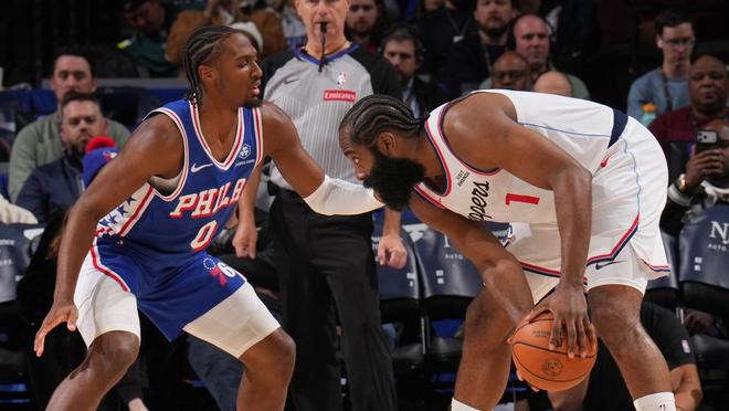 北京时间11月18日,NBA常规赛继续进行。快船奔赴客场与76人展开对决,背靠背作战,快船众将的体能面临着严峻的考验。此役,比尔赛季报销,卡哇伊莱昂纳德、小德里克琼斯、米勒均因伤缺战,泰伦卢调整了阵容,哈登搭档祖巴茨、科林斯、桑德斯、邓恩出任首发。乔尔恩比德、乌布雷、博纳伤停,保罗乔治伤愈复出,迎来赛季首秀。费城的首发五人是乔治、马克西、埃奇库姆、巴洛与德拉蒙德。哈登对阵旧主,并且与马克西的后场较量,是此战的一大看点。乔治面对旧主,也同样值得关注。