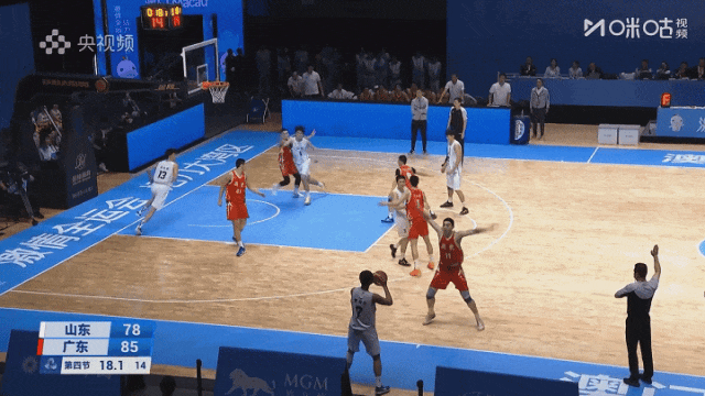 次节,山东队方面张博源增加了个人的冲击,广东在第二节上来还是依靠米少杰和夏振峰两人在外线的冲击力和投射去保证进攻火力。替换上来的蓝逸朗先是中侧步中距离,然后又底线发炮命中,成为本节奇兵。