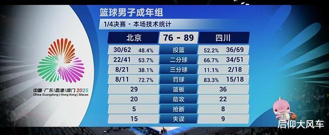 最终,四川队凭借无解的双塔(周琦33+14,胡金秋24分),以89-76击败北京跻身四强。