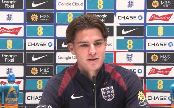 在首次入选英格兰成年代表队后,亚历克斯-斯科特出席新闻发布会接受媒体提问。
