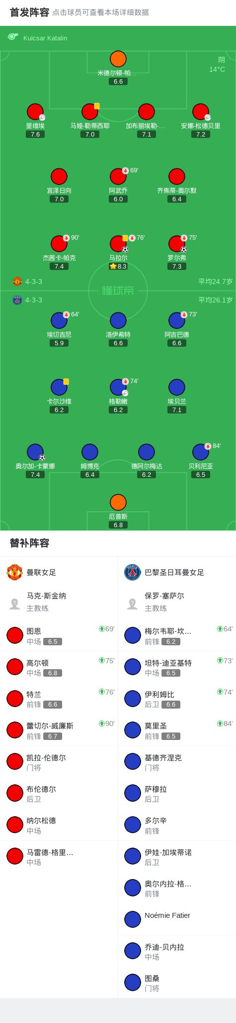 曼联女足2-1巴黎圣日耳曼女足,豪取欧冠三连胜,罗尔弗建功