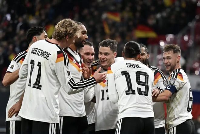 两队的首回合交手,德国队客场0-2落败。此役回到主场,日耳曼战车摩拳擦掌希望复仇。开场18分钟,基米希的传中就助攻沃尔特马德头球破门,德国队主场1-0领先。12分钟后,格雷茨卡直塞,格纳布里单刀赴会低射破门扩大比分。第38分钟,维尔茨中场精彩长传,萨内得球后面对门将冷静将球打进。4分钟后,2人再度完成连线,维尔茨左路传中打到后点,萨内轻松包抄破门。半场尚未结束,德国队已经4-0遥遥领先。