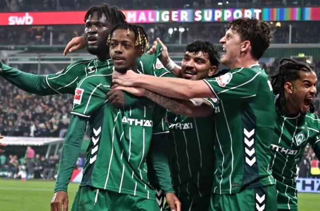 德甲第10轮,云达不莱梅主场2-1绝杀沃尔夫斯堡,21岁的尤文弃将姆班古拉补时第4分钟用一记“天外飞仙”式的凌空爆射上演主场绝杀。这粒进球只是他精彩赛季的缩影——9场德甲比赛已贡献3球1助攻2次造点,场均制造0.67球,效率排在同年龄段边锋前三;德国《踢球者》把他列入“赛季最佳新人”候选。要知道,尤文当初只收了不莱梅1000万固定转会费且分四年付清,既无回购条款,也无二转分成,如今看来属实亏大了。